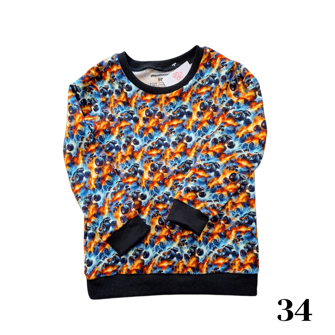 Deze leuke sweaters zijn gemaakt van een rekbare stof. De sweaters zijn in verschillende kleuren en printjes te krijgen. Deze sweaters zijn te verkrijgen in maat 80 t/m 140. Bij de grotere maten vanaf maat 116 wordt €2,50 extra gerekend in verband met groter stof gebruik. Wij gebruiken geen labels in de kleding, dit in verband met irritatie van de gevoelige huid bij sommige kinderen. De maat en wasinstructies worden in de kleding geperst.